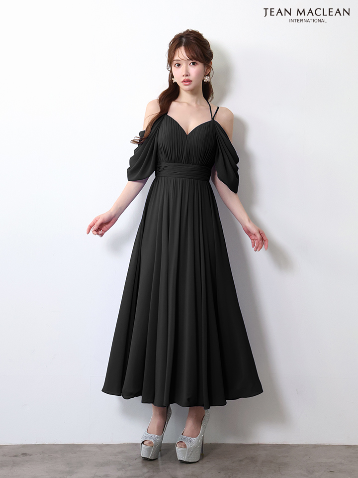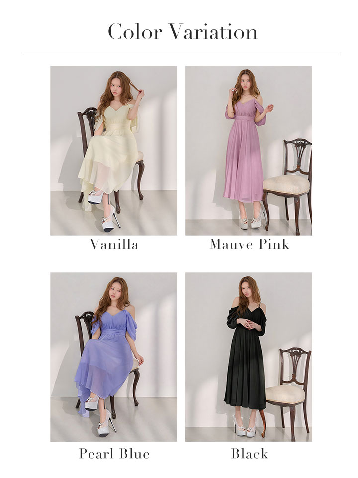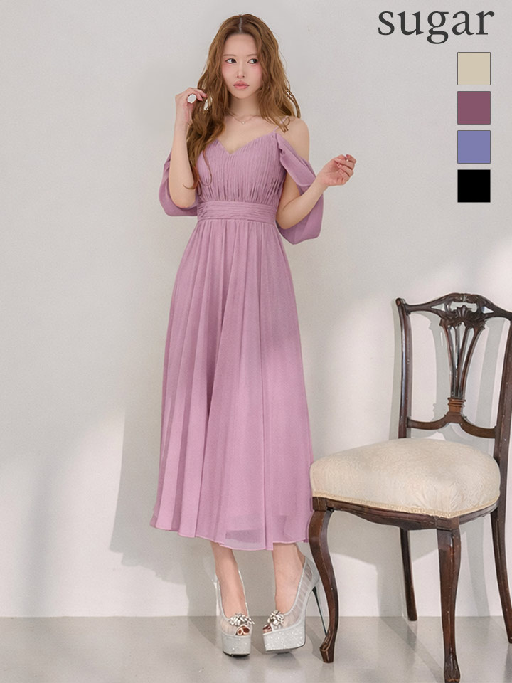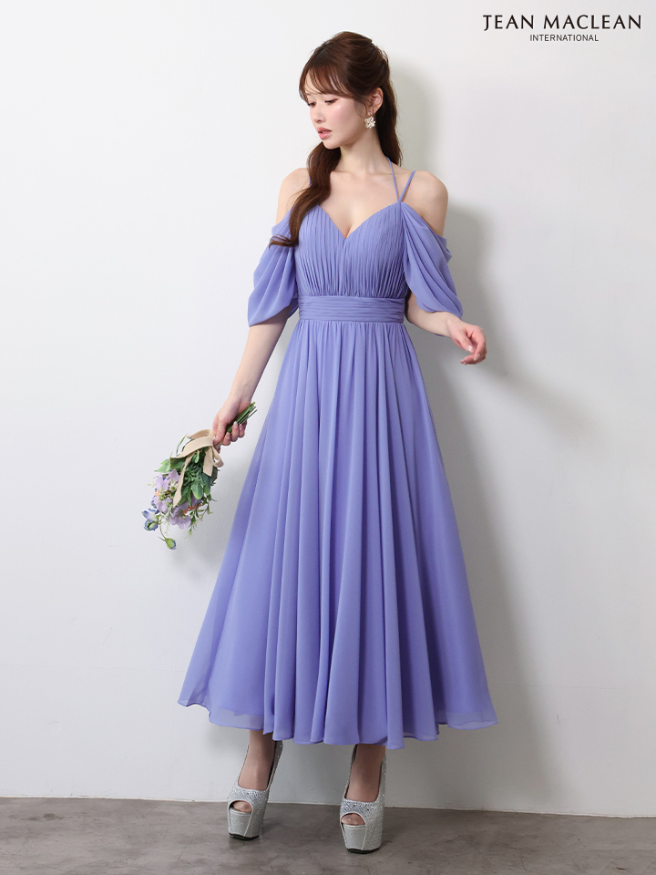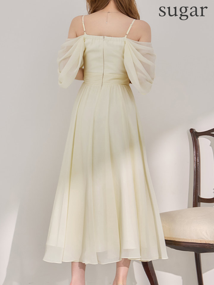 マキシ丈のシフォンが優雅に揺れるミディアムドレス♡