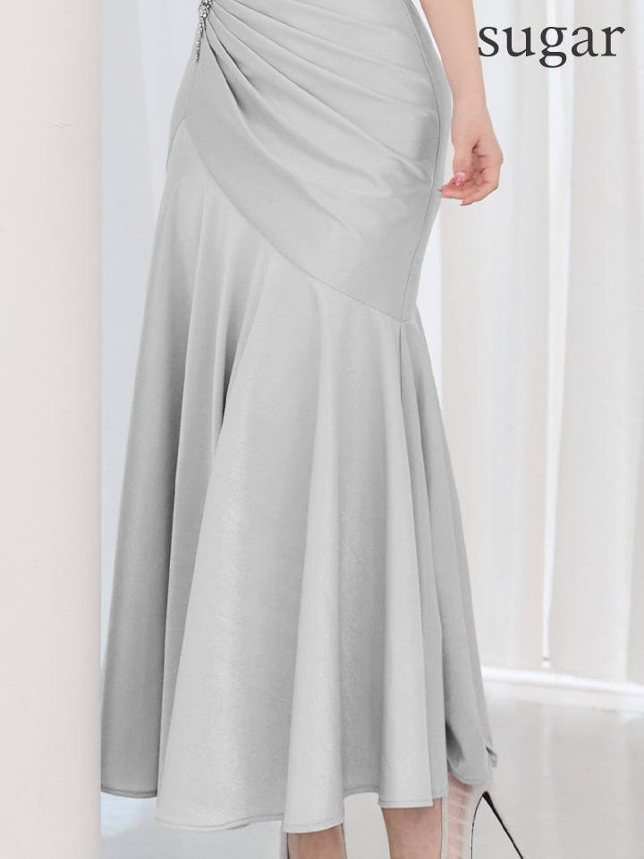 煌めくサテンに魅了されるマーメイドミディアムドレス♡