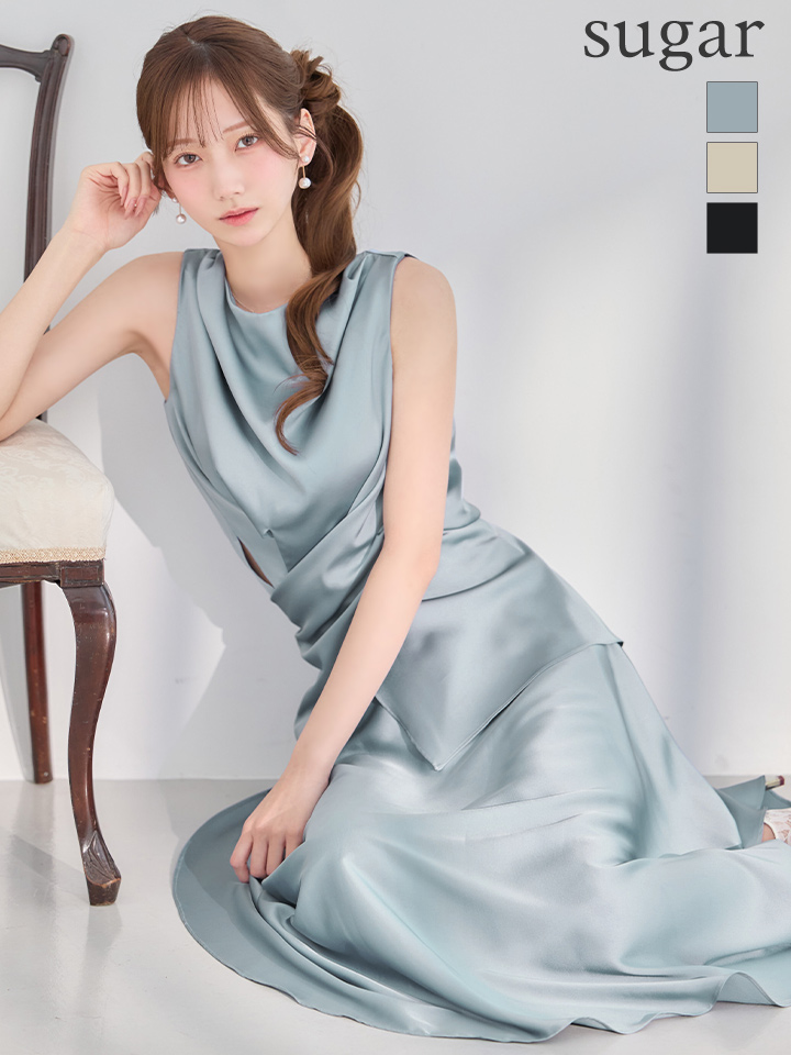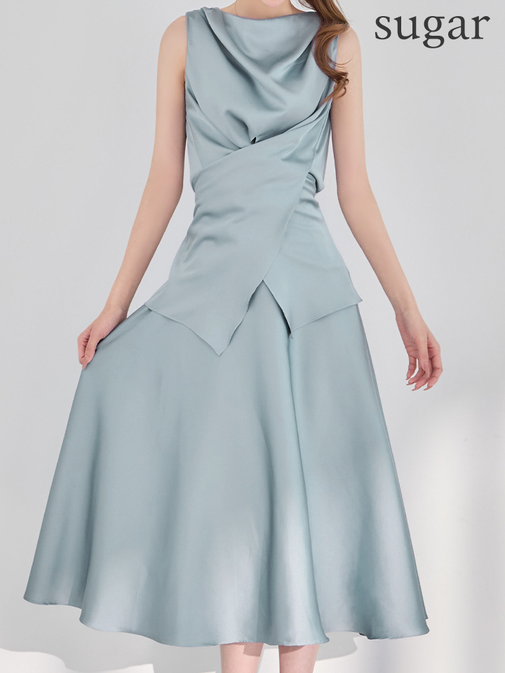 上品な光沢感が魅力のサテン素材を使用した、洗練されたセパレートドレス。