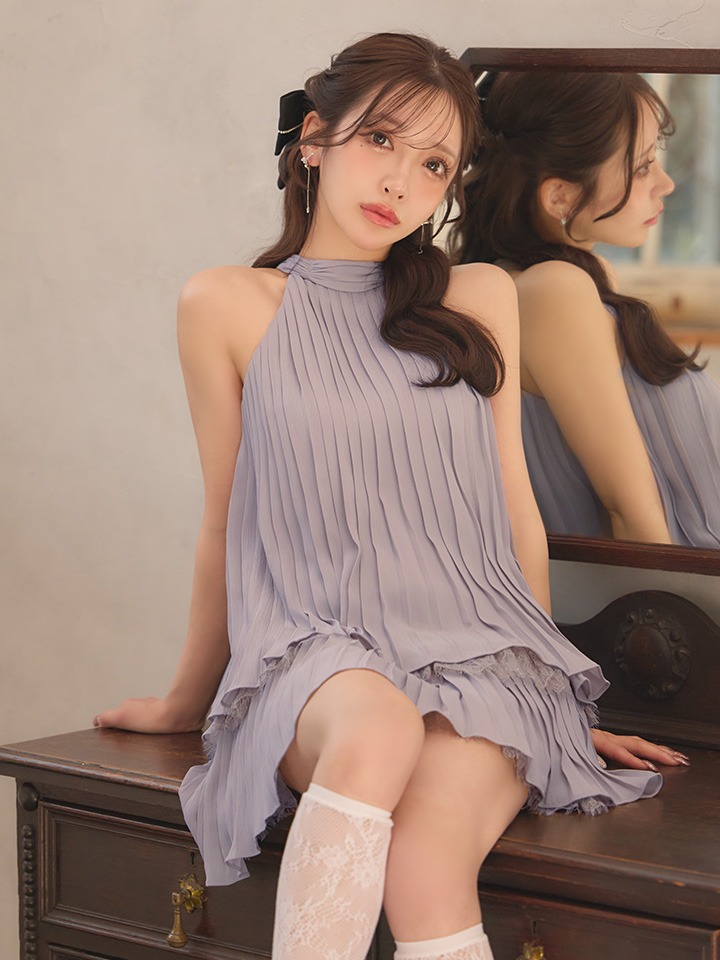 - > 【予約商品/5月上旬発送予定】XSサイズあり【ROBE de FLEURS/ローブドフルール】ホルター/ リボン/ レースプリーツ/ ラメシフォン/ ティアード/ 2段フリル/ フレア/ ミニドレス/ キャバドレス[OF08]