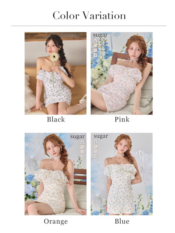 #キャバクラ #キャバ嬢 #キャバクラドレス #花柄 #シフォン #フリル #ワンショル #ギャザー