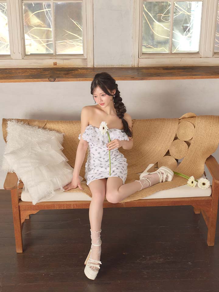 - > XSサイズあり【ROBE de FLEURS/ローブドフルール】ラメ/ フラワー/ ギャザー/ シフォン/ フリル/ ワンショル/ ベア/ 2way/ タイト/ ミニドレス/ キャバドレス[OF08]