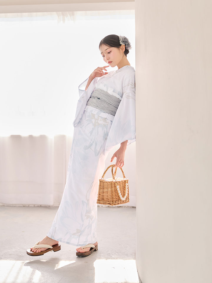 送料無料!【即日発送】ニュアンスフラワーホワイト浴衣【浴衣3点セット 浴衣/帯/下駄】[OF04] [Y-8068-sb-dzc-W-F-26MU-260420]