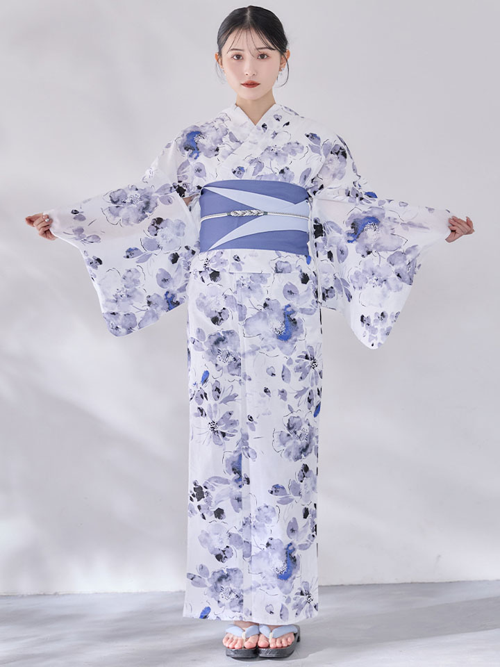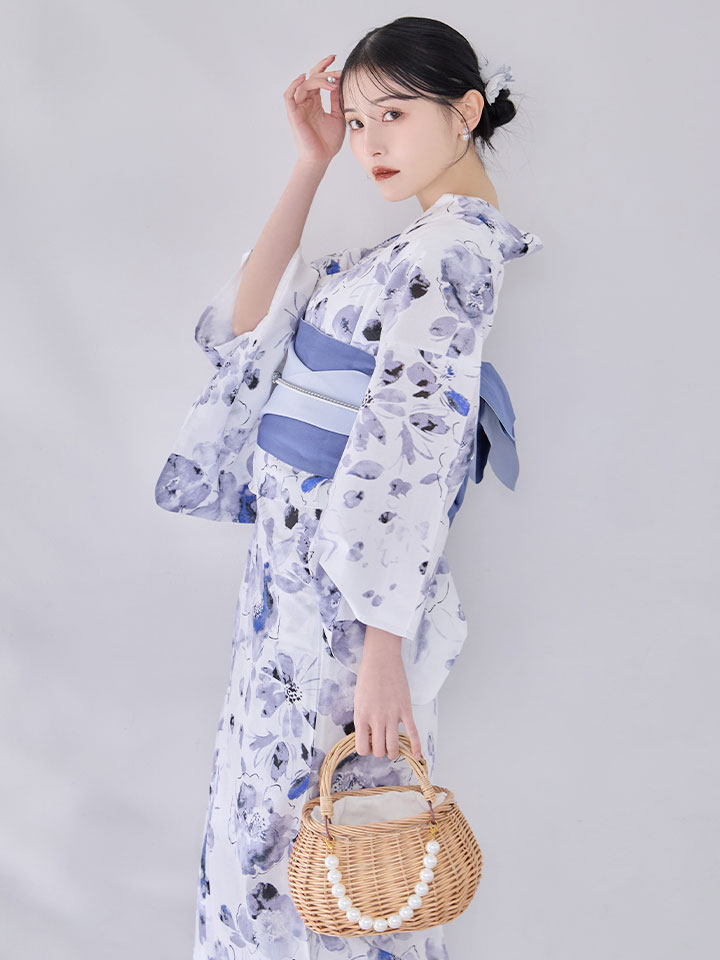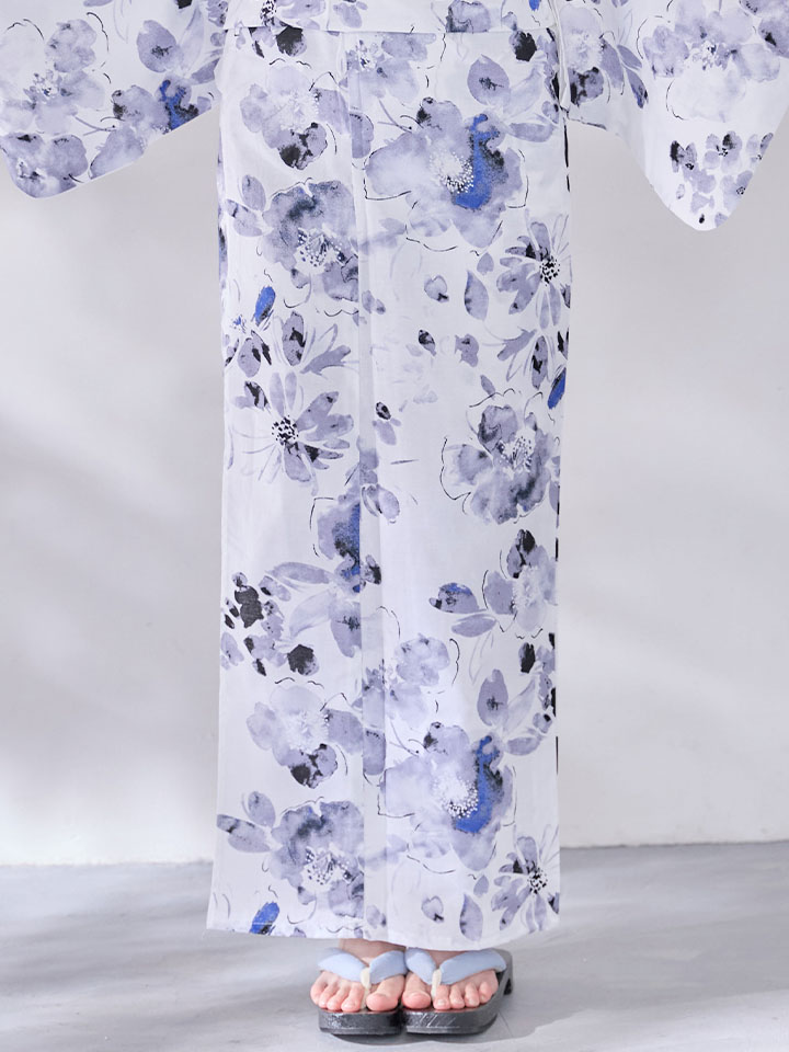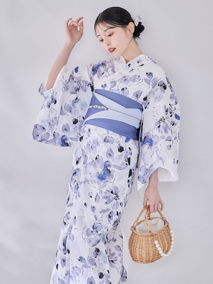 綺麗めホワイトにオシャレなフラワーデザインが際立つ大人モダン浴衣。