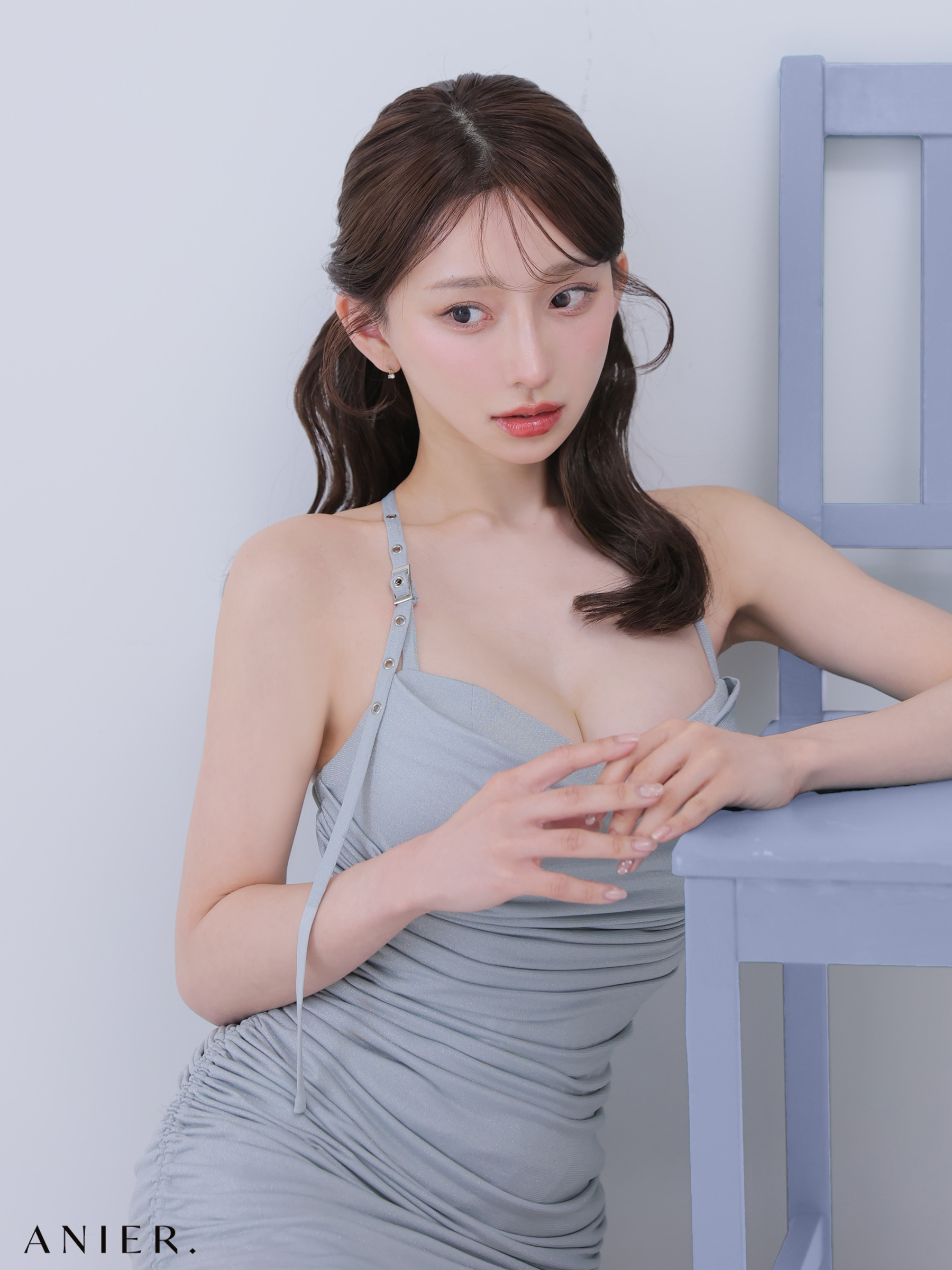 【予約商品/5月上旬発送予定】XSサイズあり【ANIER./アニエル】【ROBE de FLEURS/ローブドフルール】glitter drape couture mini dress/ ドレープ/ ショルダーベルト/ シンプル/ ストレッチ/ タイト/ ミニドレス/ キャバドレス[OF08] [ANIER4073-BLGY-S260422]