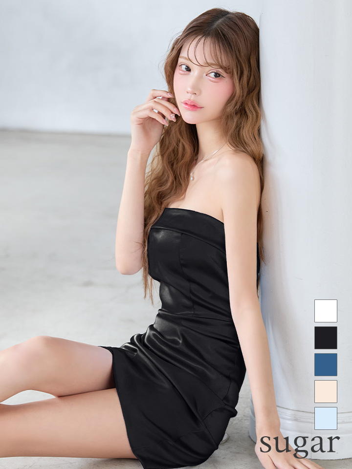 - > XSサイズあり【ANDY/アンディ】シンプル/ ワンカラー/ サテン/ ベア/ タック/ タイト/ ミニドレス/ キャバドレス[OF05]