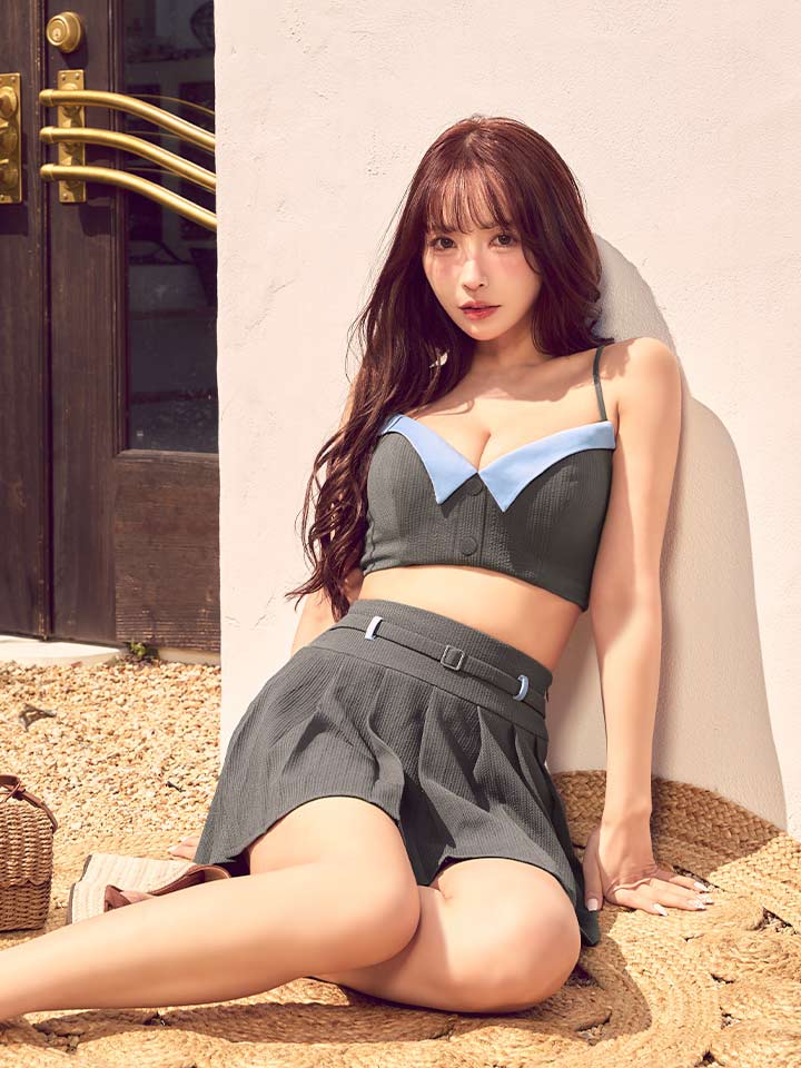 【ビキニ】【水着】バイカラープリーツスカート付きビキニ 3点セット[FB01]【予約 / 6月中旬発送予定】 [M292dzqs-GYxBL-26MY-260423]