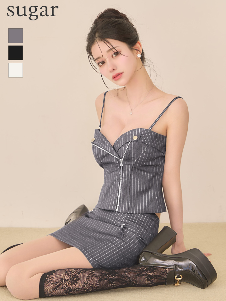 - > XSサイズあり【Glossy/グロッシー】2way/ ストライプ/ ジップ/ タイト/ ミニドレス/ キャバドレス[OF08]