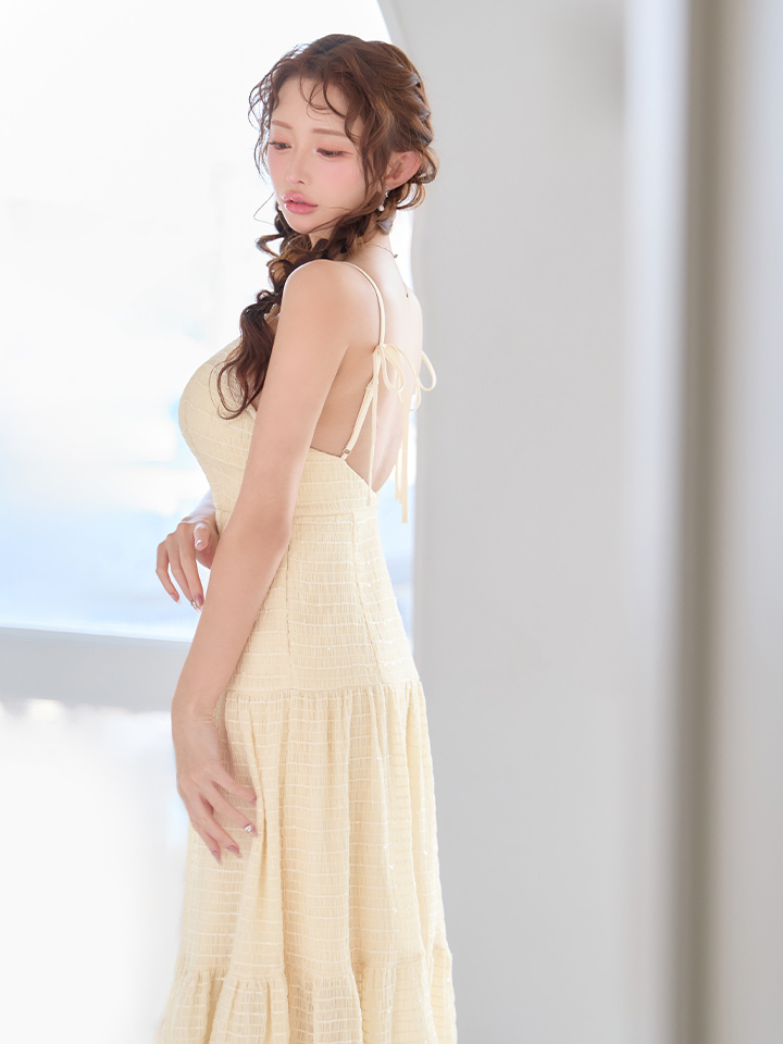 XSサイズあり【DEA./ディア】ストレッチ/ ギャザー/ シフォン/ バックオープン/ ティアード/ ワンピース/ ミディアムドレス/ キャバドレス[OF08] [DE4655-TRC-S260424]