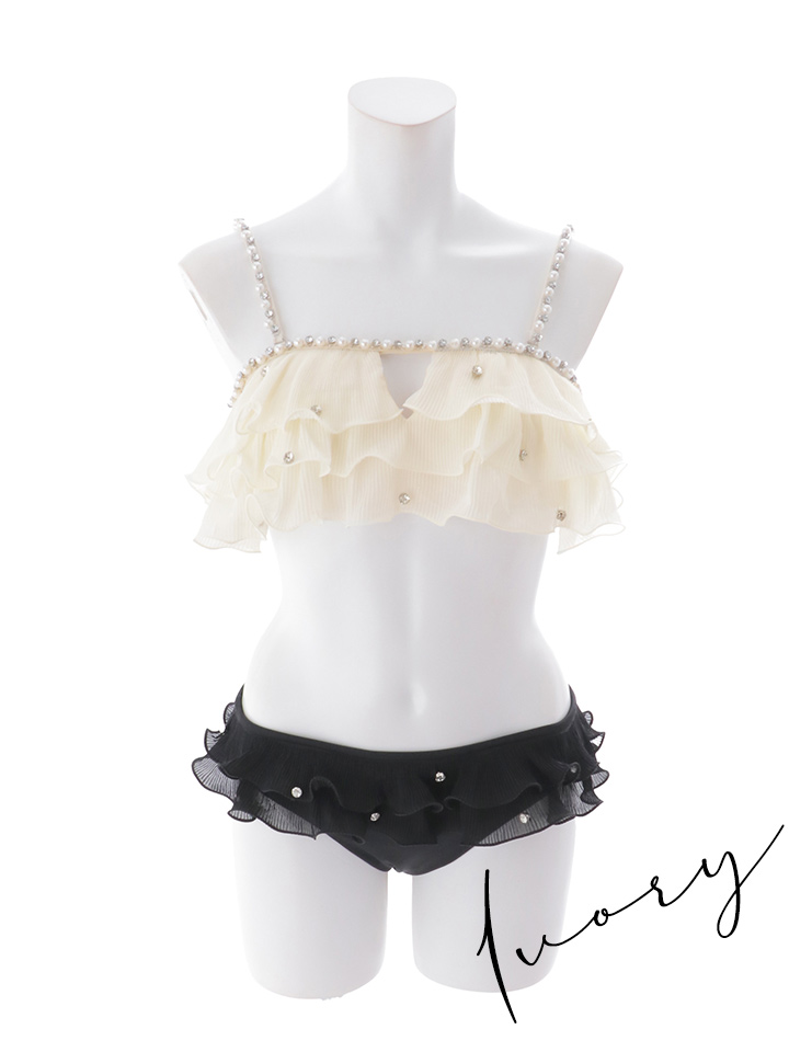 【一部予約商品/6月上旬発送予定】【ビキニ】【水着】 ガーリーフリル×ビスチェ セットアップ ビキニ 2点セット[FB01]