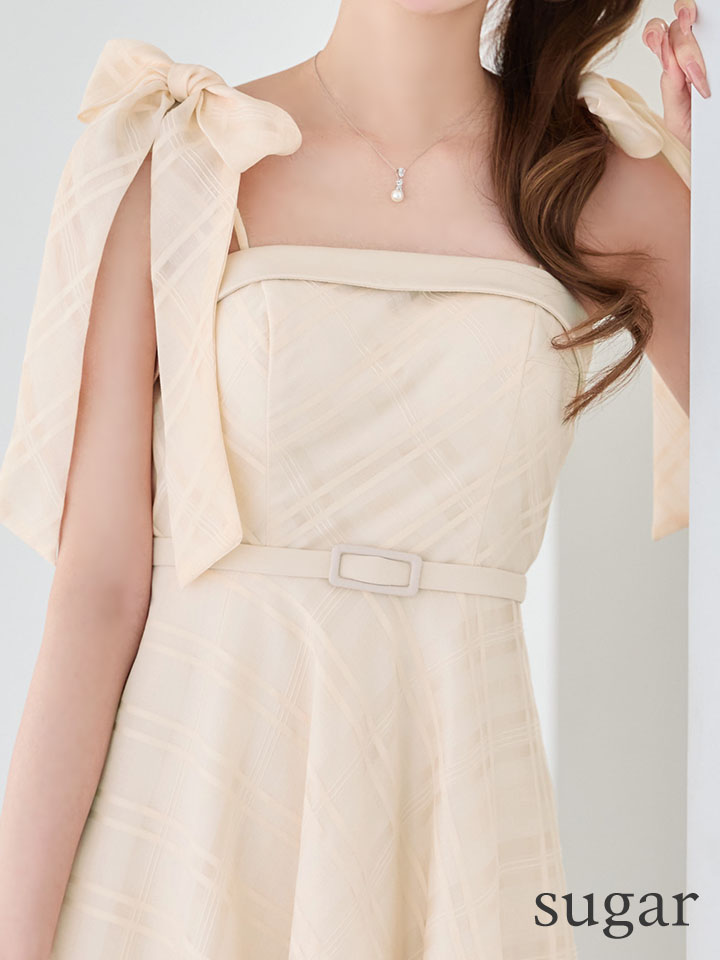 - > XSサイズあり【JEAN MACLEAN/ジャンマクレーン】オーガンジー/チェック/ ショルダーリボン/ ベルト/ キャミソール/ フレア/ ワンピース/ ミディアムドレス/ キャバドレス[OF2A]