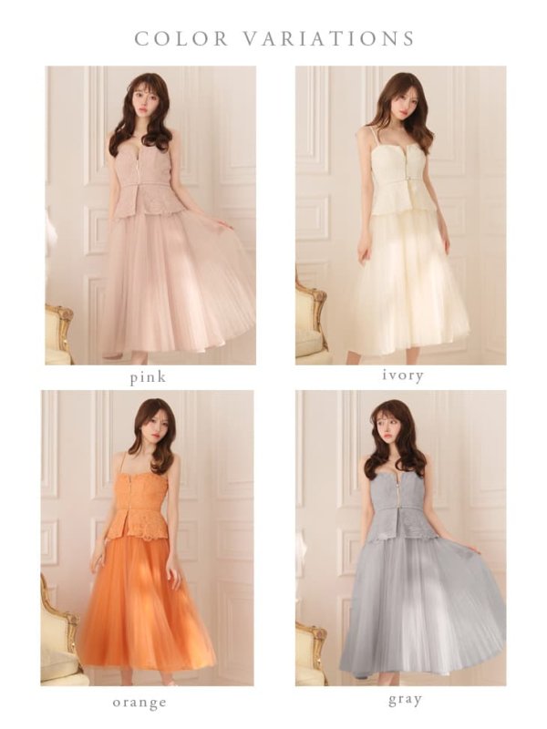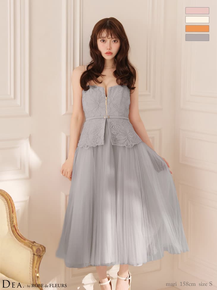 XSサイズあり【DEA./ディア】フラワー/ レース/ ペプラム/ チュール/ ミディアムドレス/ キャバドレス long[OF08] [DE4920-IV-S260424]