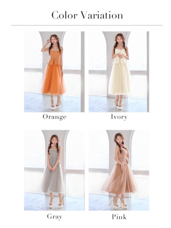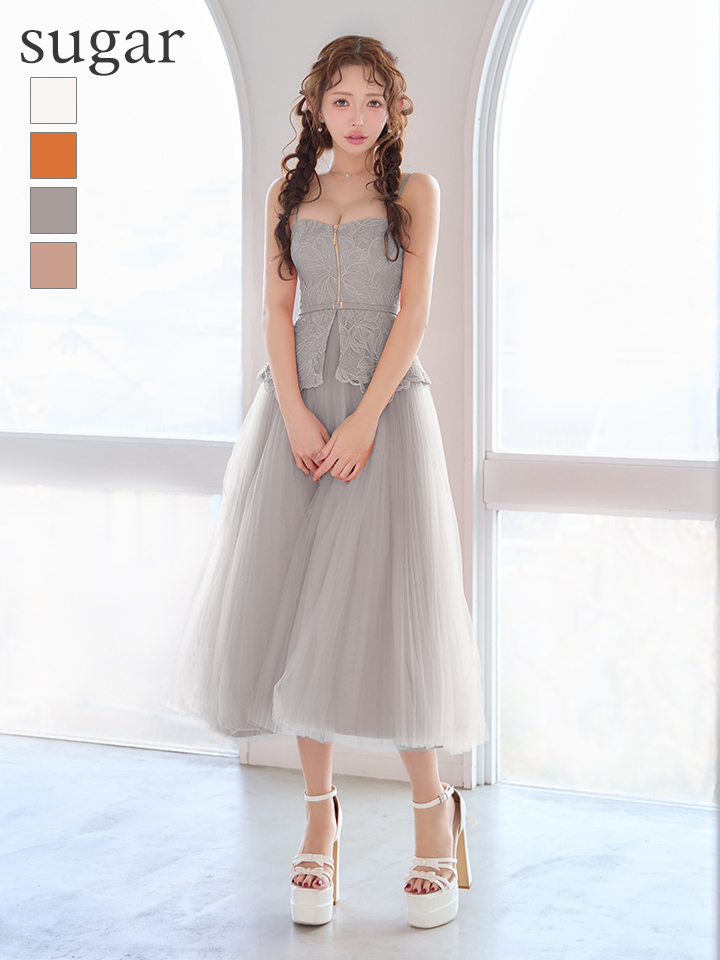 - > XSサイズあり【DEA./ディア】フラワー/ レース/ ペプラム/ チュール/ ミディアムドレス/ キャバドレス long[OF08]