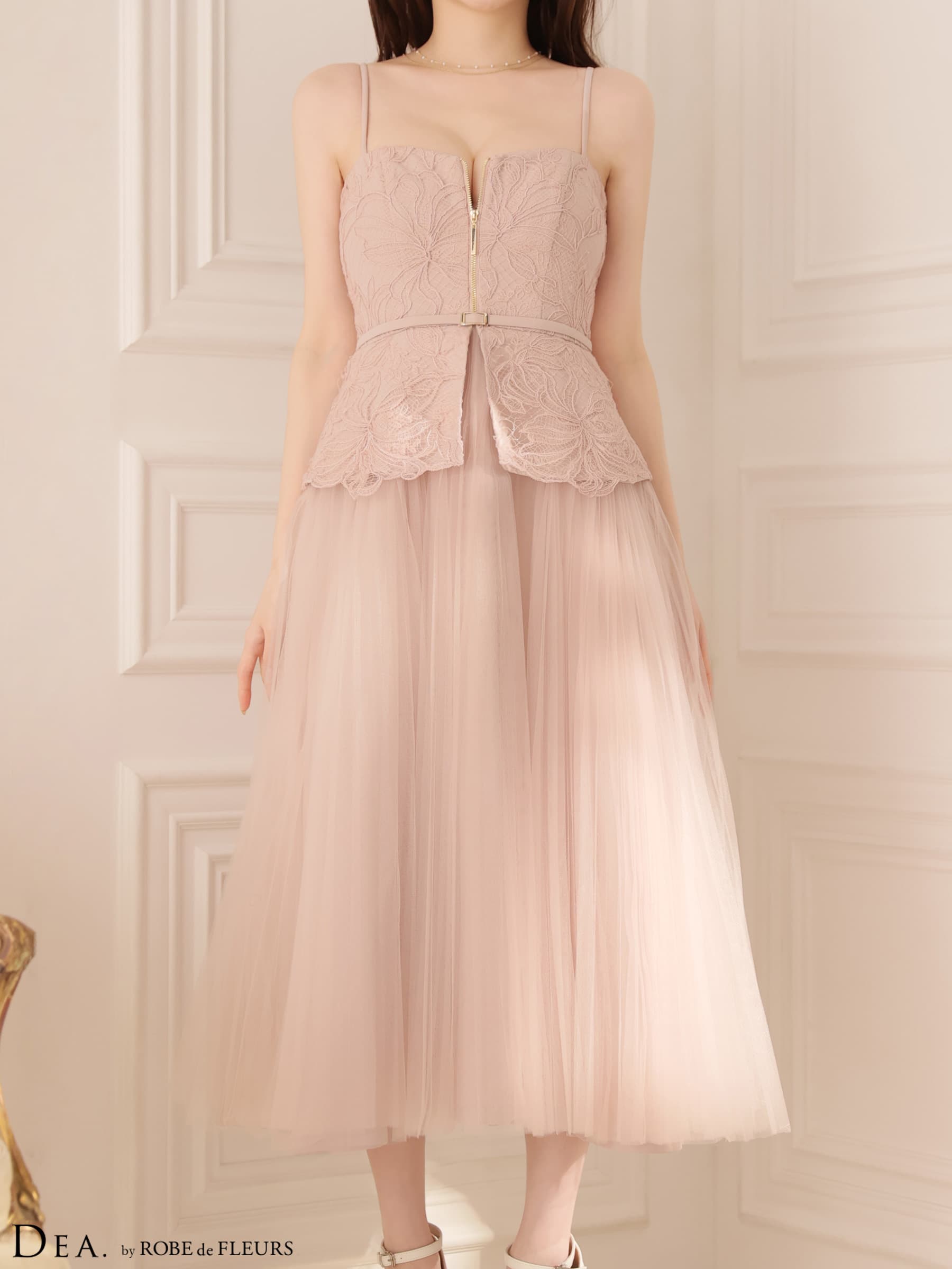 XSサイズあり【DEA./ディア】フラワー/ レース/ ペプラム/ チュール/ ミディアムドレス/ キャバドレス long[OF08]