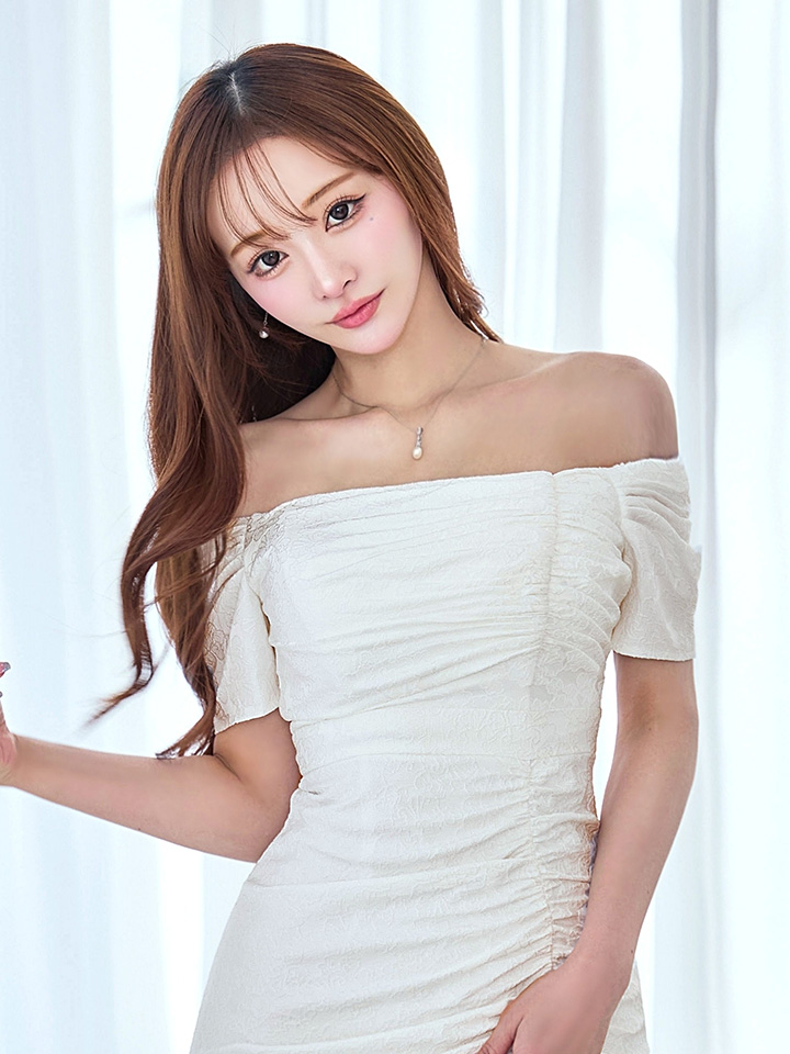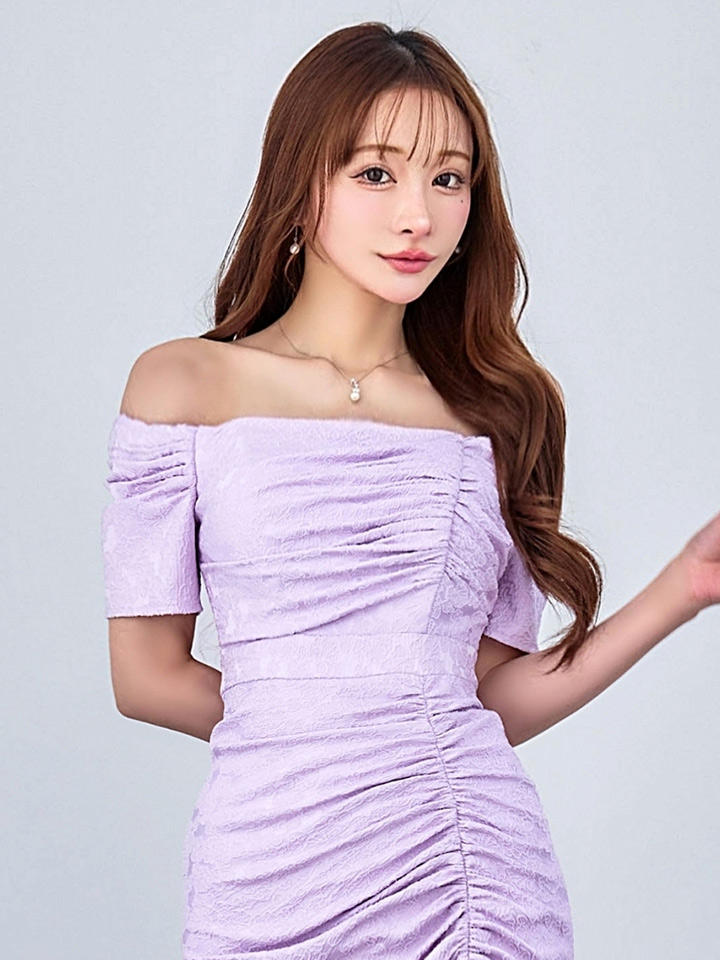 大胆なオフショルデザインでアクセ映えも抜群の1着です