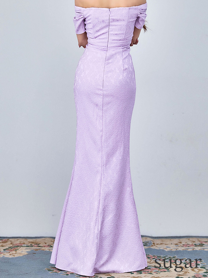 Lサイズあり【UNA VALERIE / ウナヴァレリェ】マーメイド/ フラワージャガード/ オフショル/ スリット/ タック/ ロングドレス/ キャバドレス long[OF05]