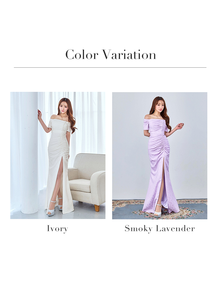 Lサイズあり【UNA VALERIE / ウナヴァレリェ】マーメイド/ フラワージャガード/ オフショル/ スリット/ タック/ ロングドレス/ キャバドレス long[OF05] [V60249L-IV-S2604]