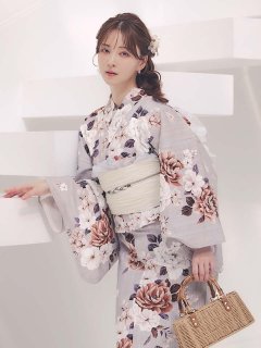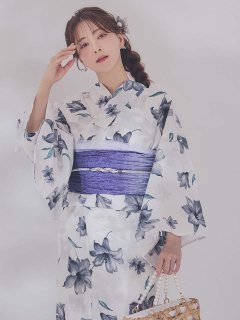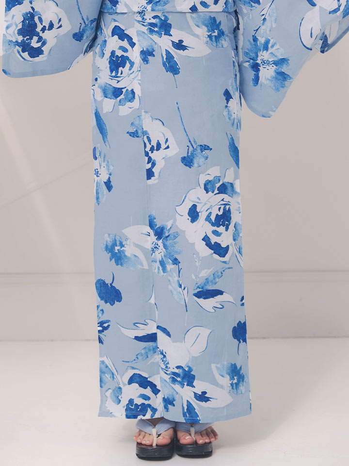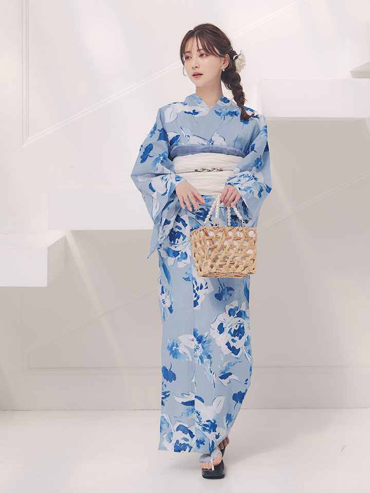 【即日発送】くすみブルー水彩花柄浴衣【浴衣3点セット 浴衣/帯/下駄】[OF04/HC03] [Y-9213-kj-BL-F-26MR-260427]