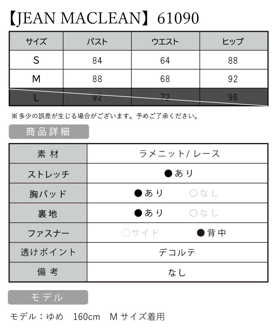 ※商品によって、ホック部分が金具に引っかけるタイプとドレス本体に引っかけるタイプがございます。【JEAN MACLEAN/ジャンマクレーン】