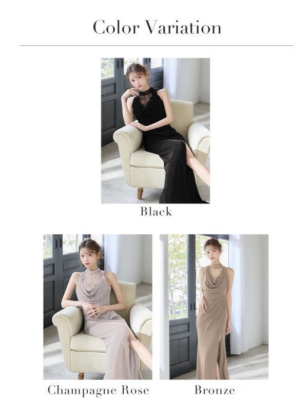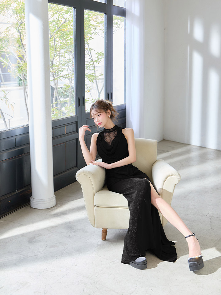 【JEAN MACLEAN/ジャンマクレーン】ドレープ/ タック/ ラメニット/ レース/ ノースリーブ/ ハイネック/ スリット/ タイト/ ロングドレス/ キャバドレスlong[OF2A] [61090-JM-BZ-S260428]