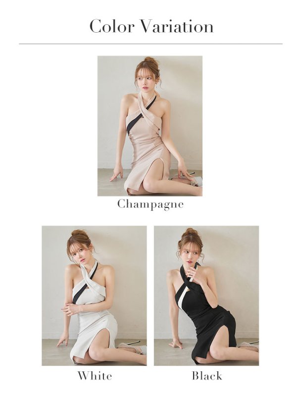 - > 【予約商品/5月下旬発送予定】XSサイズあり【JEAN MACLEAN/ジャンマクレーン】クロスネック/ バイカラー/ ホルターネック/ 無地/ ノースリーブ/ ひざ丈/ スリット/ タイト/ ミディアムドレス/ キャバドレス[OF2A]