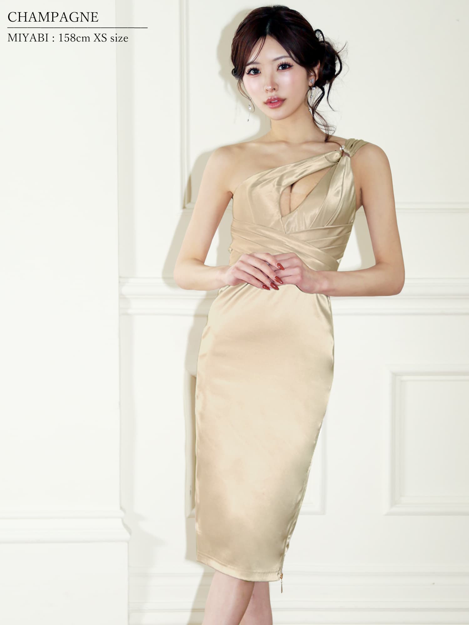 - > 【予約商品/5月中旬-5月下旬発送予定】XSサイズあり【Veautt/ヴュート】バストカット/ ショルダーチャーム/ ウエストクロス/ サテン/ サイドファスナー/ タイト/ ミディアムドレス/ キャバドレス[OF05]