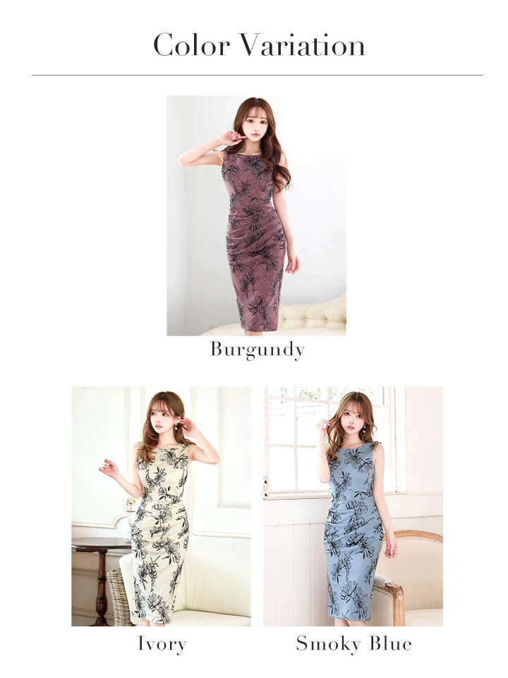 XLサイズあり【VANESSA HEART / ヴァネッサハート】【OF05】フラワープリント/ / ボートネック/ ノースリーブ/ タック/ ストレッチ/ ひざ丈/ タイト/ ミディアムドレス/ キャバドレス