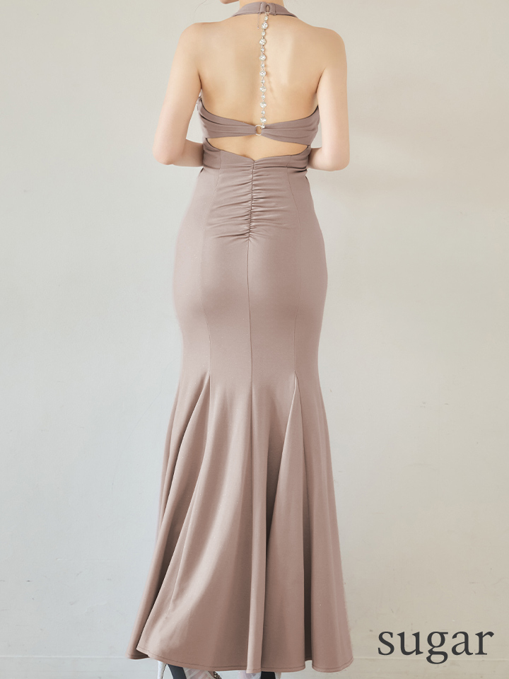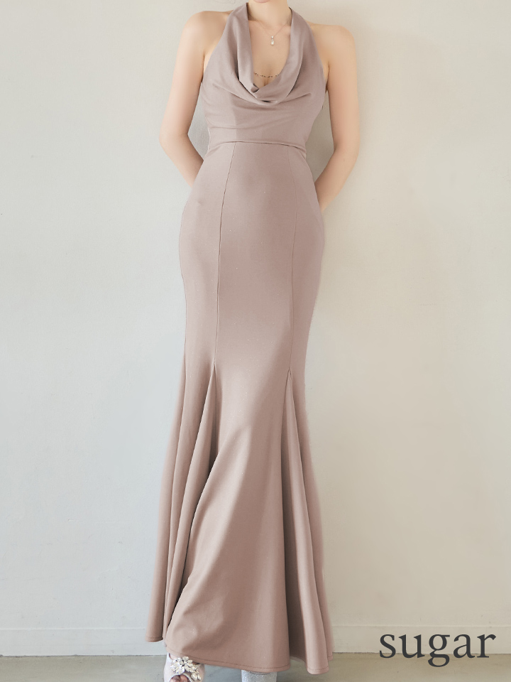 XSサイズあり【Glossy/グロッシー】ラメニット/ ドレープ/ ホルター/ マーメイド/ ワンピース/ ロングドレス/ キャバドレスlong[OF08] [GL4662-W-S260428]