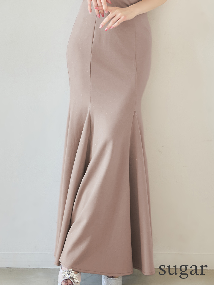 長めの丈感のマーメイドスカートがスタイルアップしつつ
