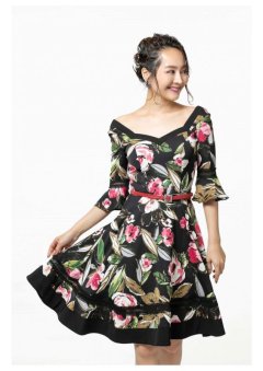 Lサイズあり【Alice/アリス】フラワープリント/バストリボン/サテン/ミニドレス /キャバドレス【HC03】