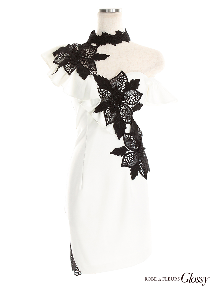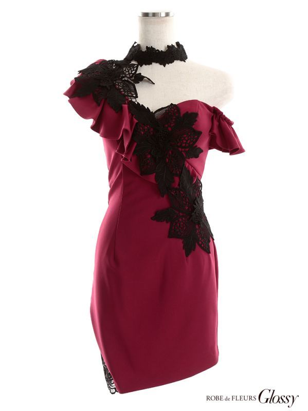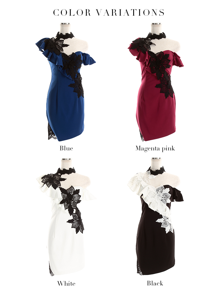 アシンメトリーのフリルショルダーが大胆なセクシードレス。
