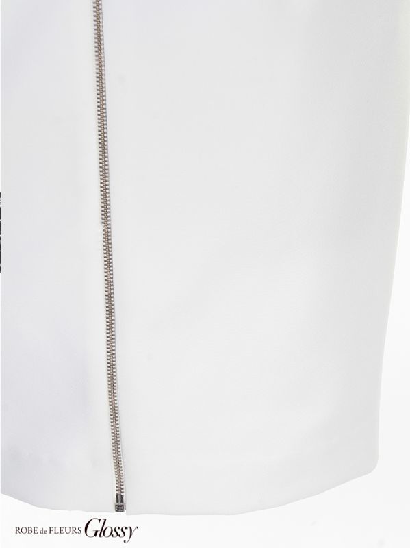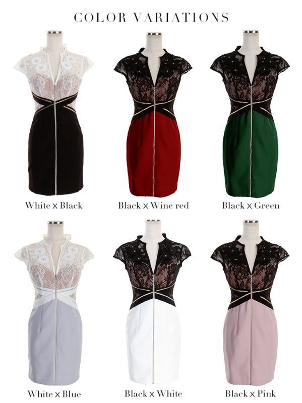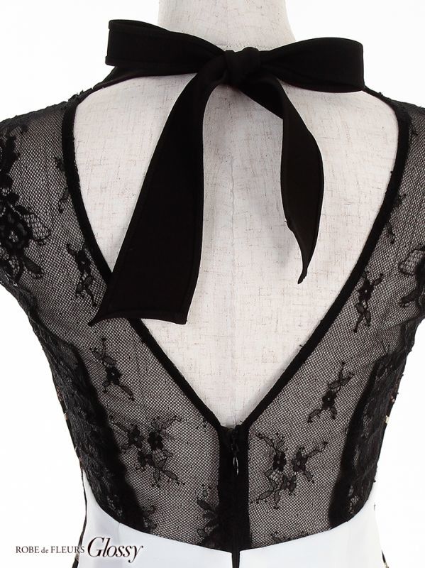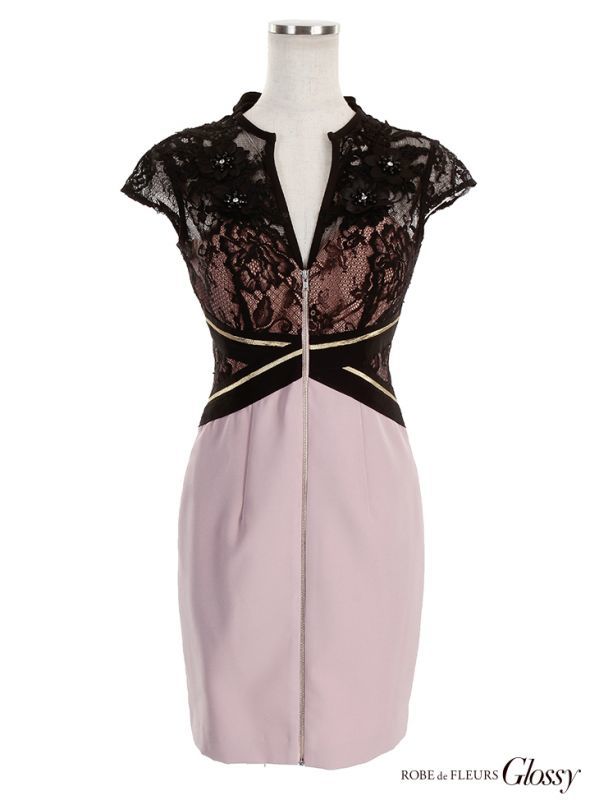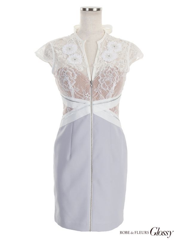 立体フラワーレースが目を惹くタイトミニドレス。