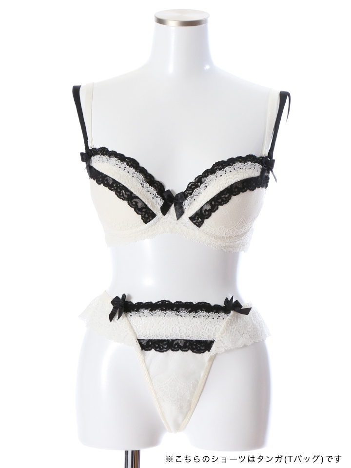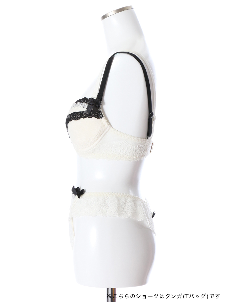 【ランジェリー/下着】レース ホワイトxブラック ダブルストラップ 3/4カップブラジャー