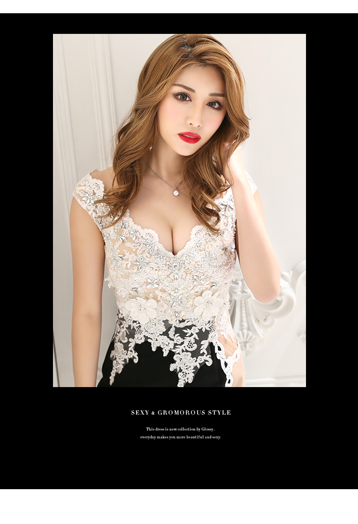 大胆に配置されたレースの透け感がセクシーなドレス