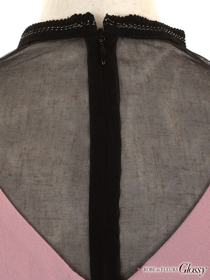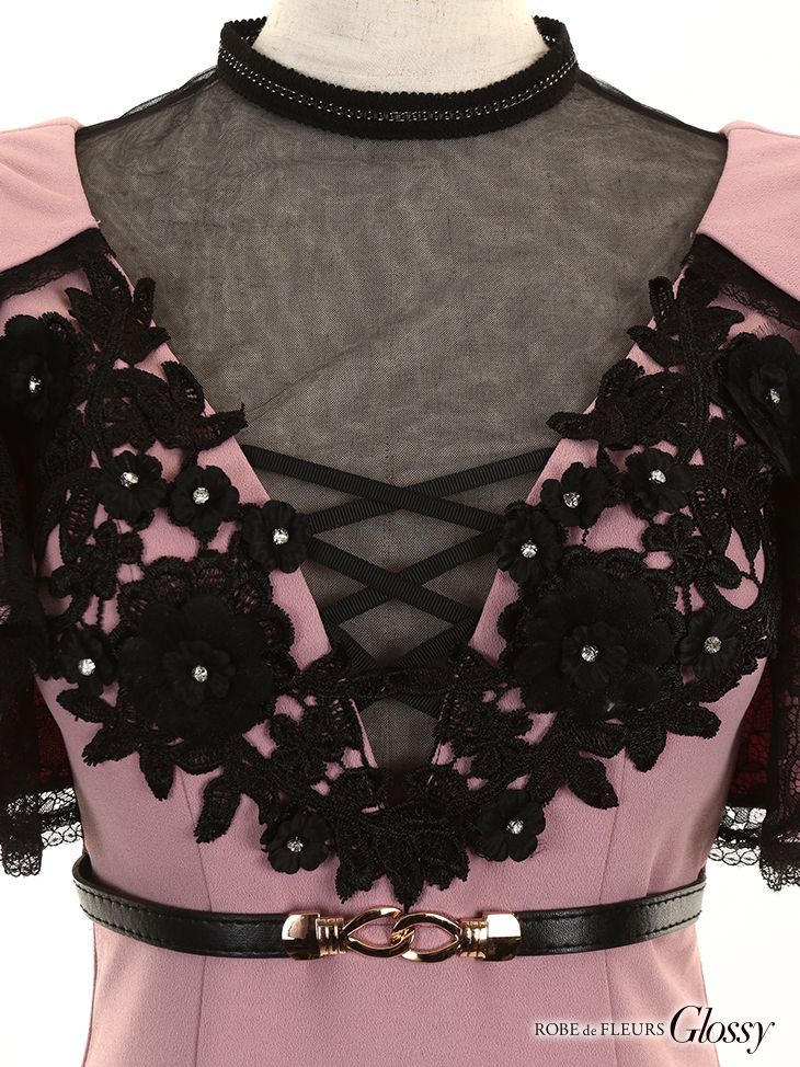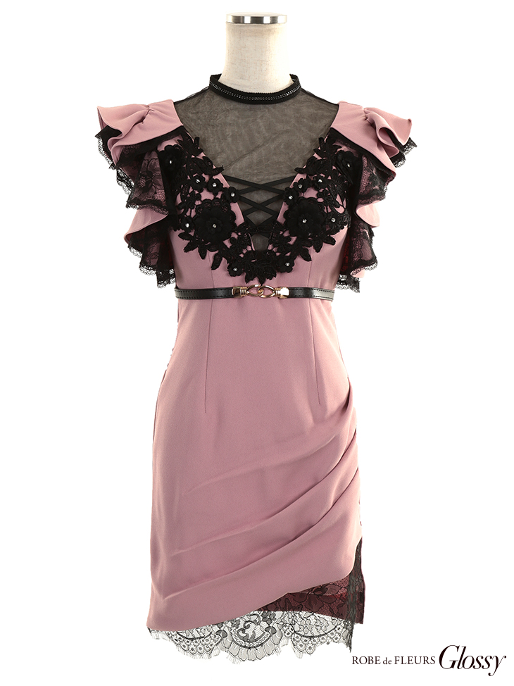 XSサイズあり【Glossy/グロッシー】長袖/ レース/ ラップ/ ビーズ/ チュール/ セットアップ/ タイト/ ミニドレス/ キャバドレス[OF08]