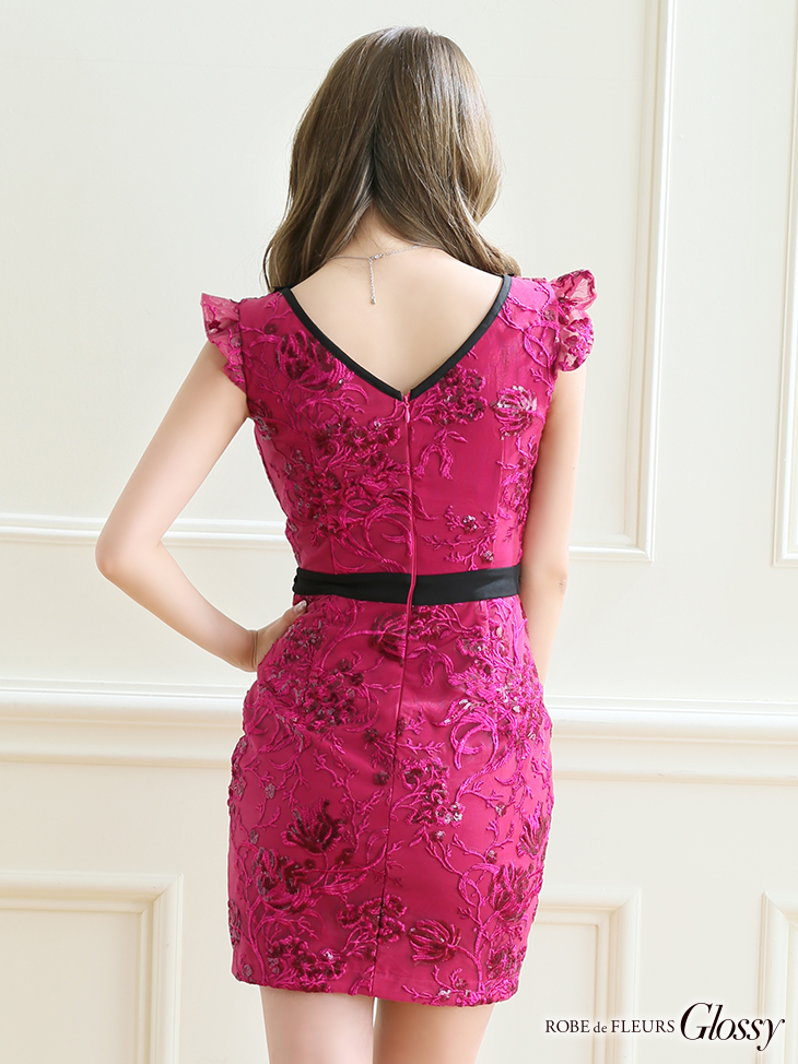 高級感溢れるスパンコール刺繍レースで華やかなタイトミニドレス♡