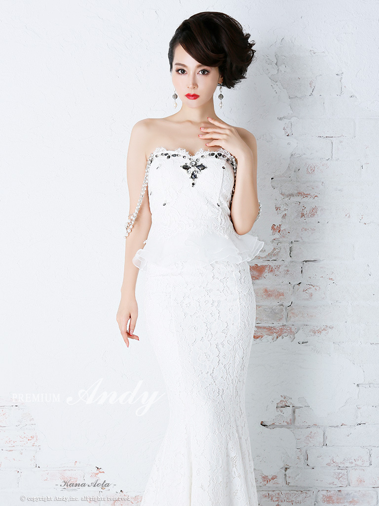 【PREMIUM ANDY】繊細なレースとパールが織りなす上品なマーメードロングドレス