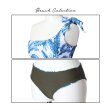 リーフ柄xカーキの3WAYリバーシブルワンショルビキニ。