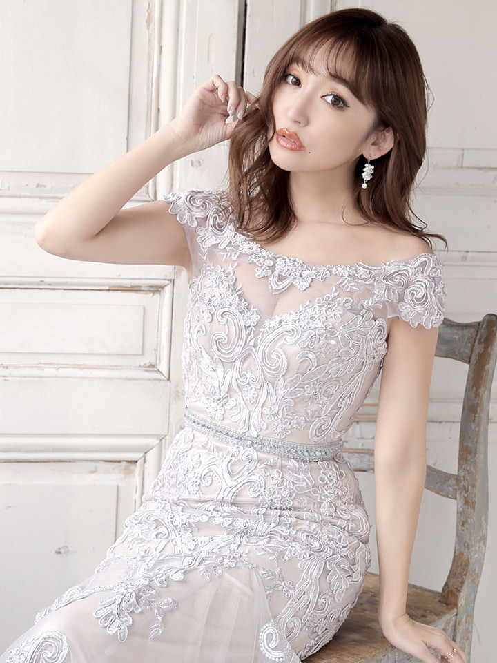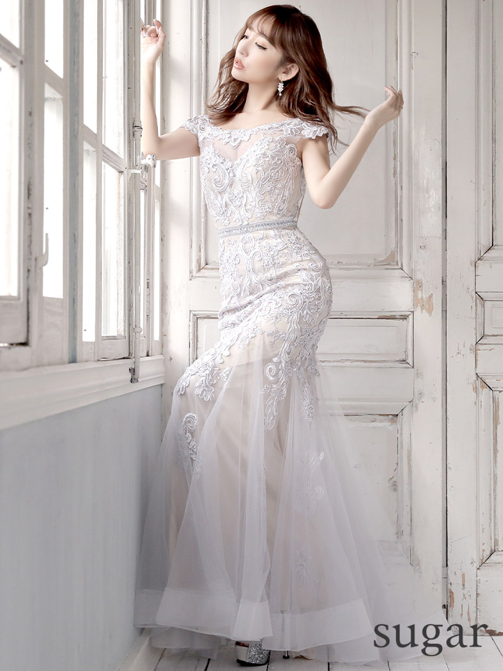 レース刺繍がエレガントなロングキャバドレス