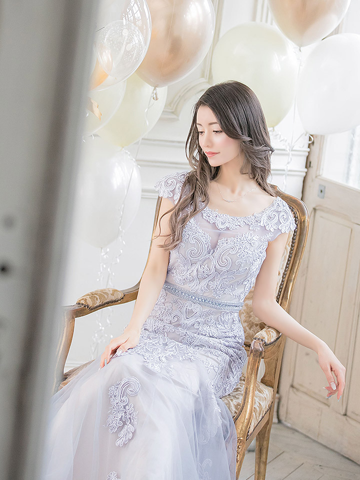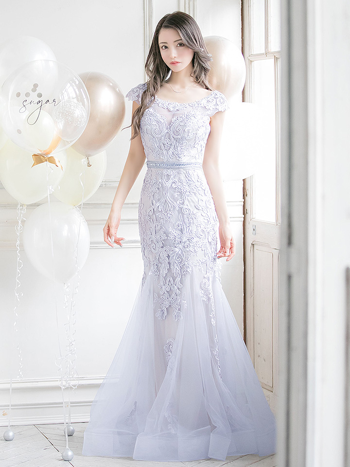 【JEAN MACLEAN/ジャンマクレーン】チュール/ 切り替え/ レース刺繍/ マーメイド/ スピンドル/ ロング/ロングドレス /キャバドレス long[OF2A] [91559-Fu-S2106]
