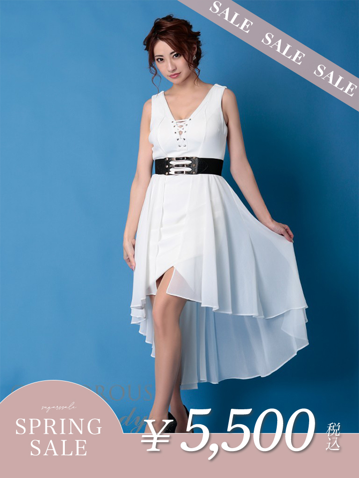 【決算SALE開催中!! 】【Andy GLAMOROUS/アンディグラマラス】ワンカラー/ベルト/ シフォン/ ストレッチ/ テールカット/ キャバドレス[FB03] [GMS-V664-W-2107]