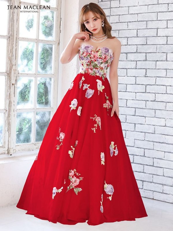 【JEAN MACLEAN/ジャンマクレーン】フラワーオーガンジー/ ベア/ プリンセス/ ロングドレス / キャバドレス long[OF2A]