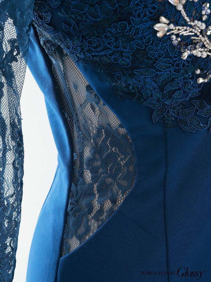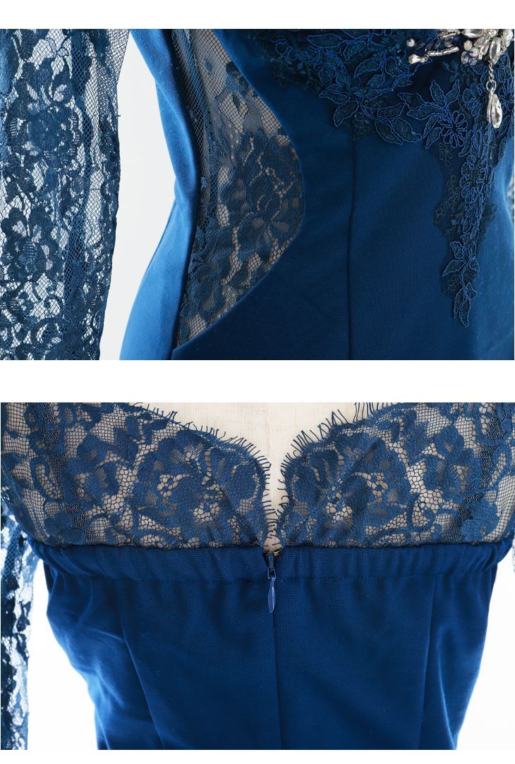 XS-Lサイズあり【Glossy/グロッシー】レーススリーブ/ 七分袖/ 長袖/ バストクロスデザイン/ ストレッチ/ タイト/ ミニドレス/ キャバドレス【OF08】 [GL2473-TealBL-2112]