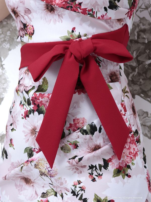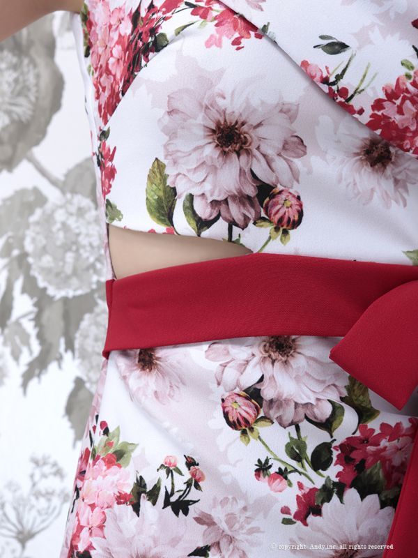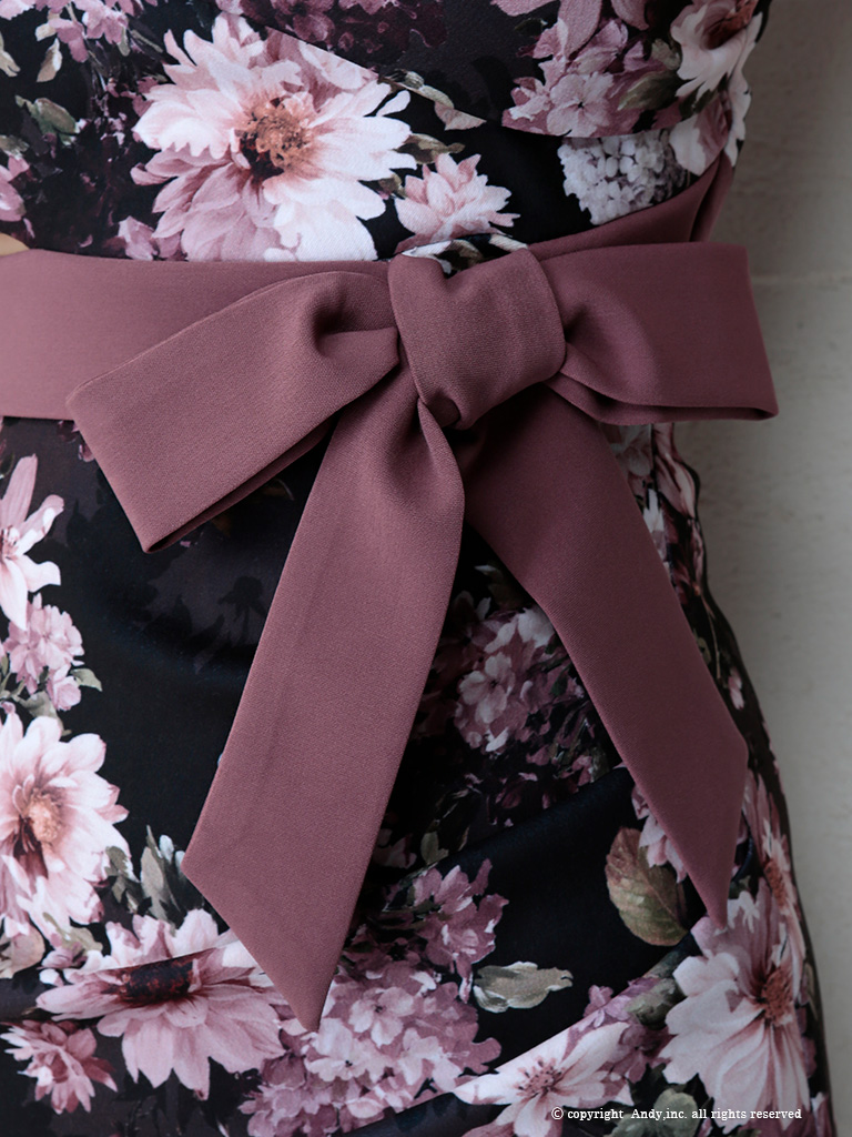 【ANDY/アンディ】フラワープリント/ウエストリボン/アシメ/ウエストカット/キャバドレス[FB03]