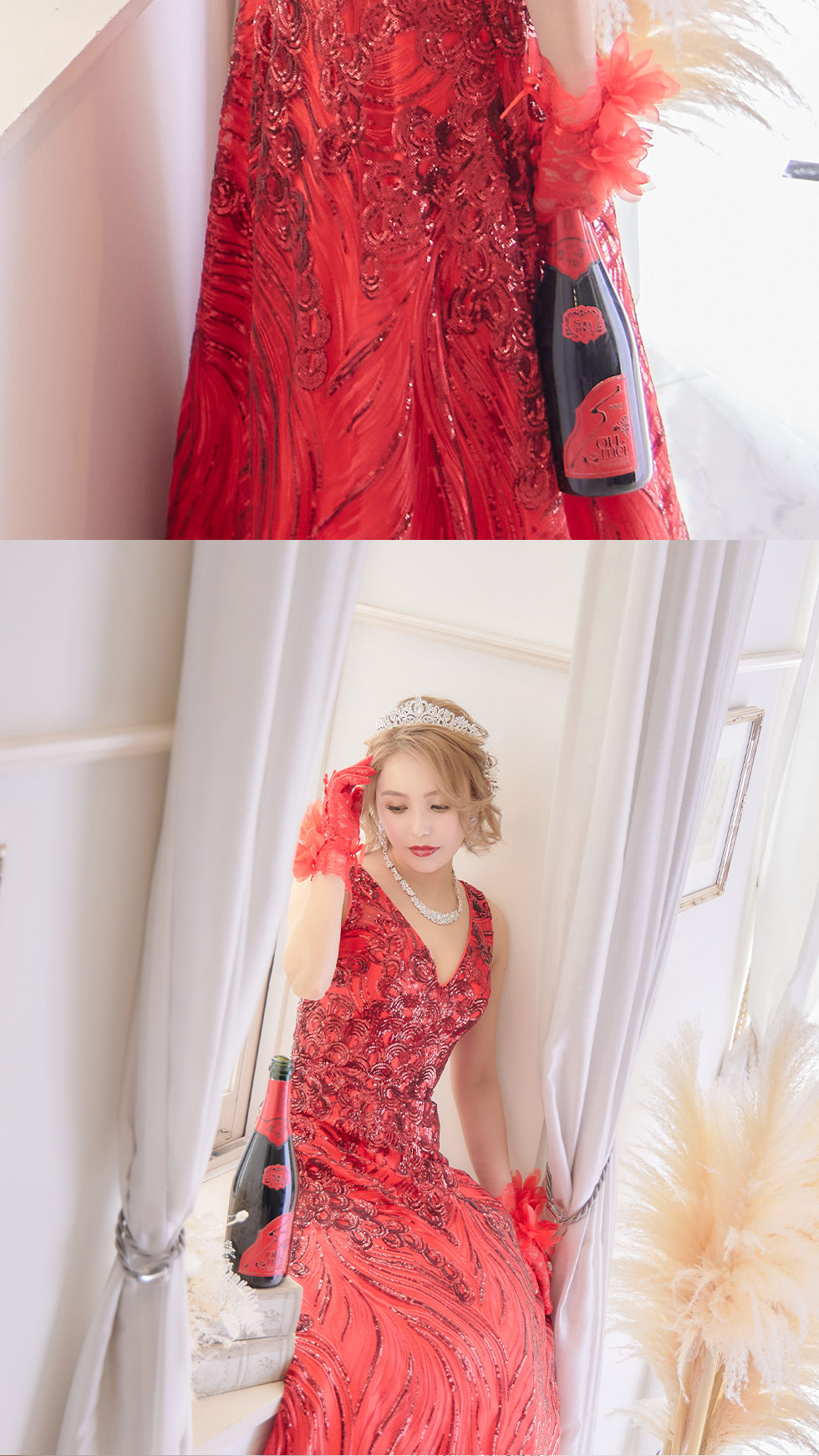 煌めく総スパンコール刺繍がゴージャスなロングドレス