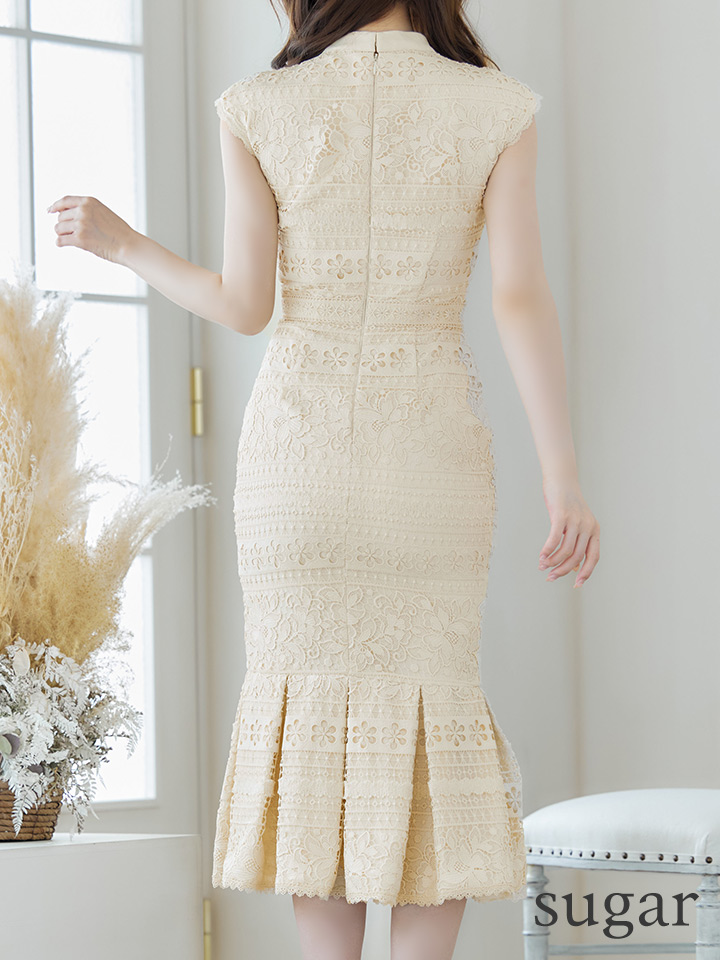 - > sugarオリジナルドレス★ Lサイズあり!!【sugar】マーメイド/ リボンネック/ フラワーレース/ ノースリーブ/ ワンピース/ ミモレ丈/ タイト/ ミディアムドレス/ キャバドレス[OF08]