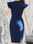 XS-Lサイズあり【ERUKEI エルケイ】ワンカラー/ Vネック/ フリル袖/ 袖あり/ ミディアム丈/ ワンピース/ タイト/キャバドレス[OF2] [LKE33257-NV-S2206]