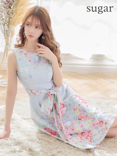 XS-Lサイズあり【SETTAN/セッタン】ボタニカルプリント/ リボン/ Aライン/ ノースリーブ/ ワンピース/ ミディアム丈/ キャバドレス[OF2]