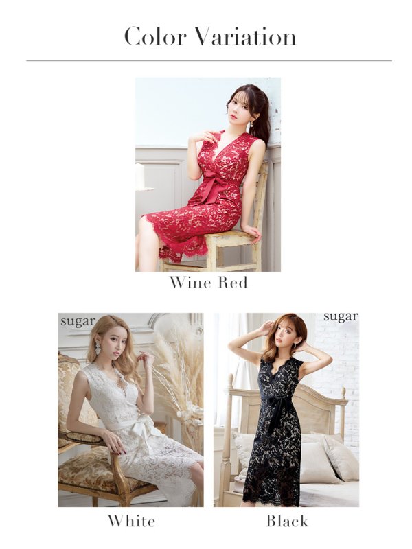 - > XS-Lサイズあり【ERUKEI エルケイ】総レース/ ノースリーブ/ ウエストリボン/ ひざ丈/ ミディアム/ タイト/ ワンピース/ キャバドレス[OF2]