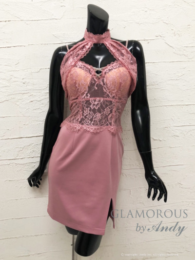 【Andy GLAMOROUS/アンディグラマラス】アメスリ/ ホルターネック/ レース切り替え/ スリット/ タイト/ ミニドレス/ キャバドレス[OF05]